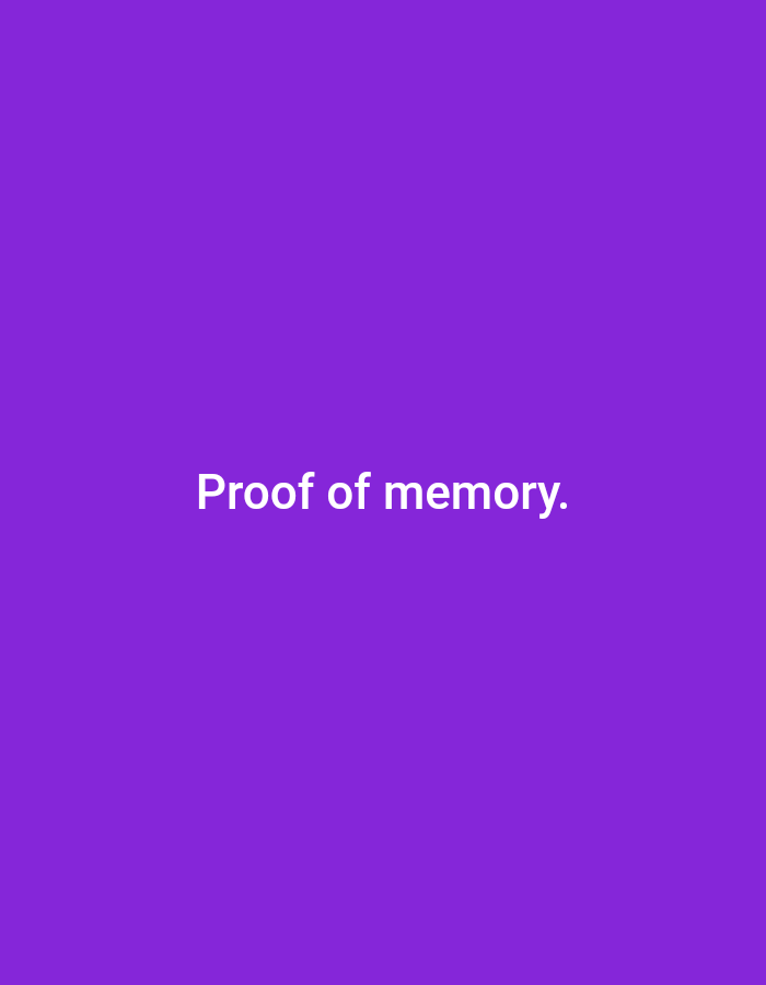 The image is a solid purple background with the white text "Proof of memory