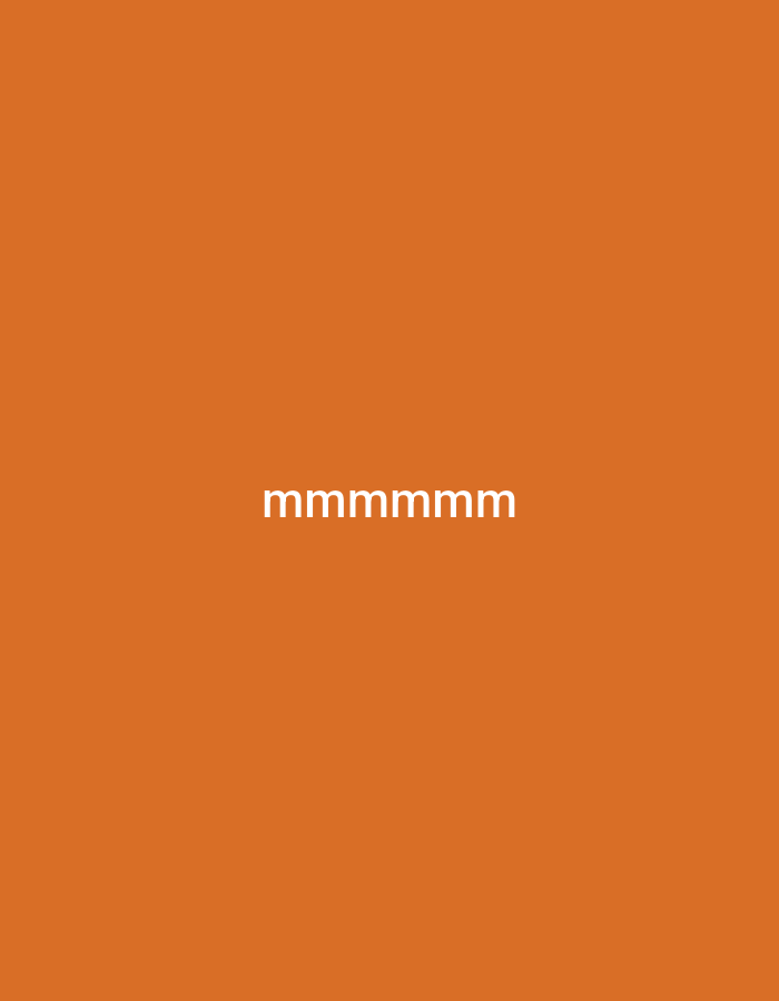The image contains a solid orange background with the word "mmmmmm" in white text centered in the lower portion of the image