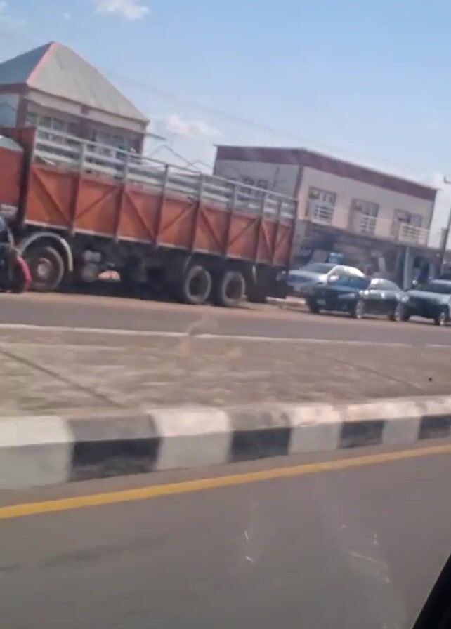view from a moving vehicle driving on a road in what appears to be a developing country, possibly in Africa
