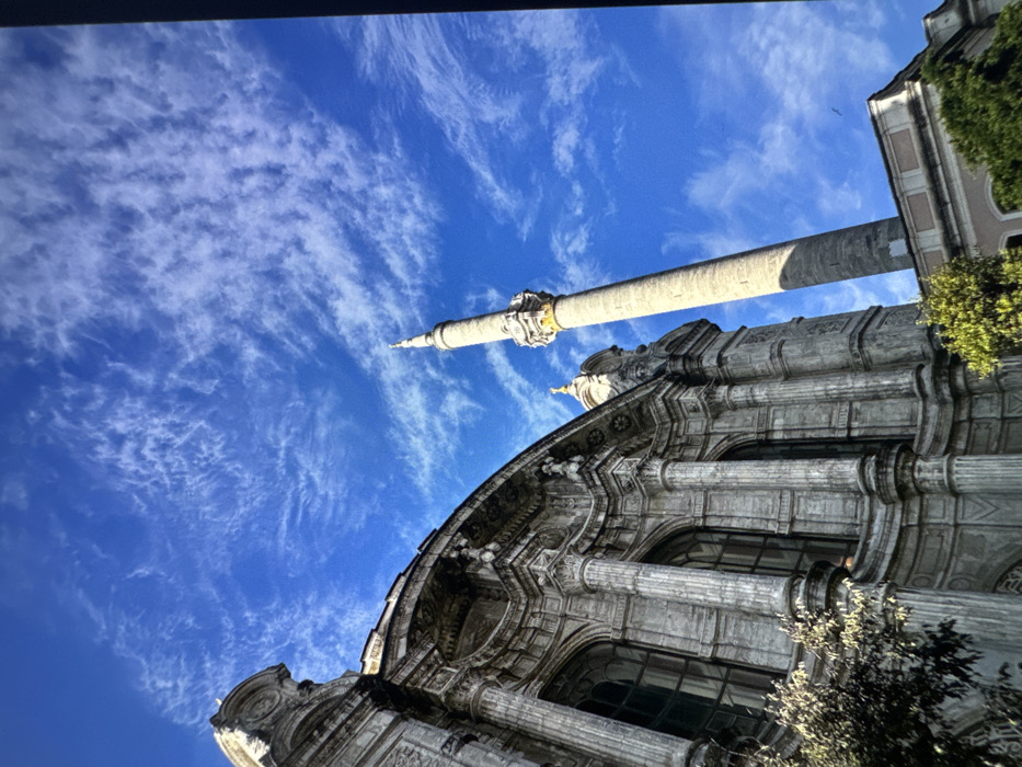 - "This image presents a low-angle view of an ornate, light-colored stone building and a slender minaret under a bright blue sky filled with scattered, wispy white clouds" by FM-hWM0q1, licensed under CC BY 4.0