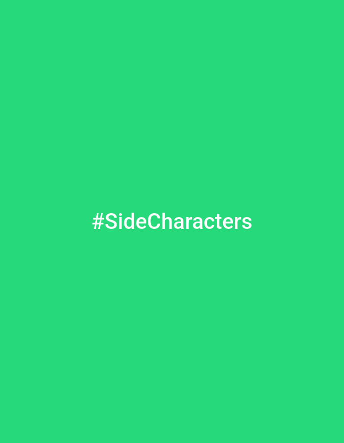 - "The image displays a solid green field, centrally featuring the white text "#SideCharacters"" by FM-n22Rc2, licensed under CC BY 4.0
