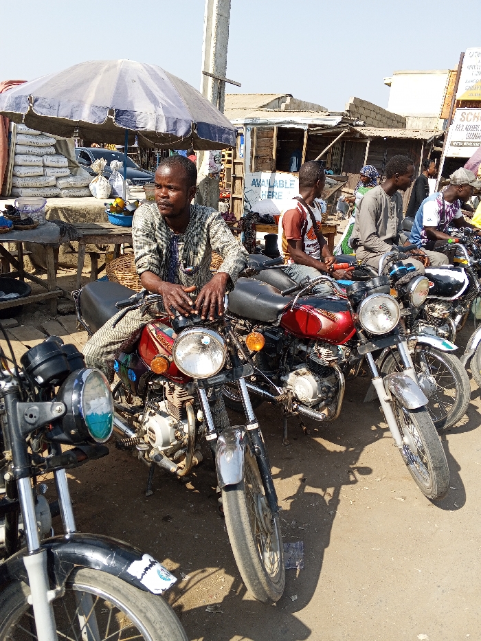 - "This image depicts an outdoor scene in Zango-ndaji, Nigeria, characterized by a concentration of motorcycles and informal market stalls under a clear sky" by FM-XS7TG3, licensed under CC BY 4.0