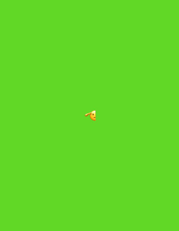 The image displays a uniform, bright green background, characteristic of a chroma key screen or digital canvas. Centrally positioned in the upper right quadrant is a partial, yellow-orange emoji, which appears to be peeking into the frame from the right. Only a segment of its rounded face and a curved, lighter orange appendage, consistent with a hand, are visible. There are no discernible real-world subjects, objects, people, actions, or interactions present. The image provides no geographical context and cannot be attributed to a specific location within Jos, Nigeria, or any other physical environment.
