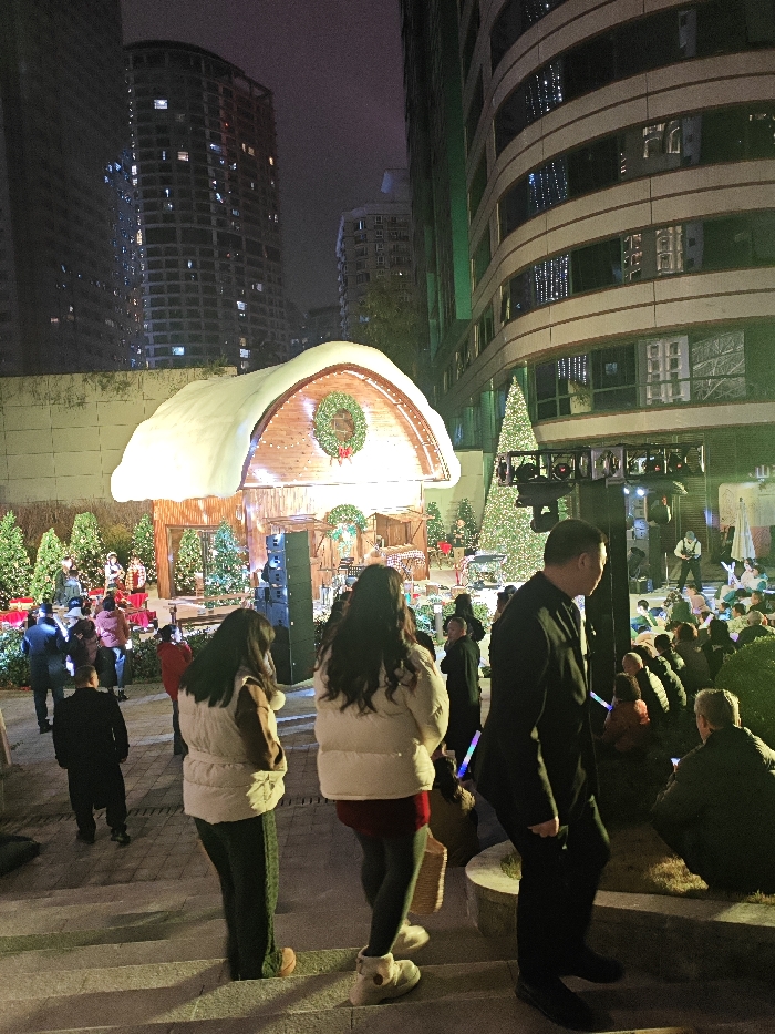 - "This image depicts an outdoor night event in Yuzhong District, China, characterized by winter holiday decorations and a public gathering" by FM-DpvWU2, licensed under CC BY 4.0
