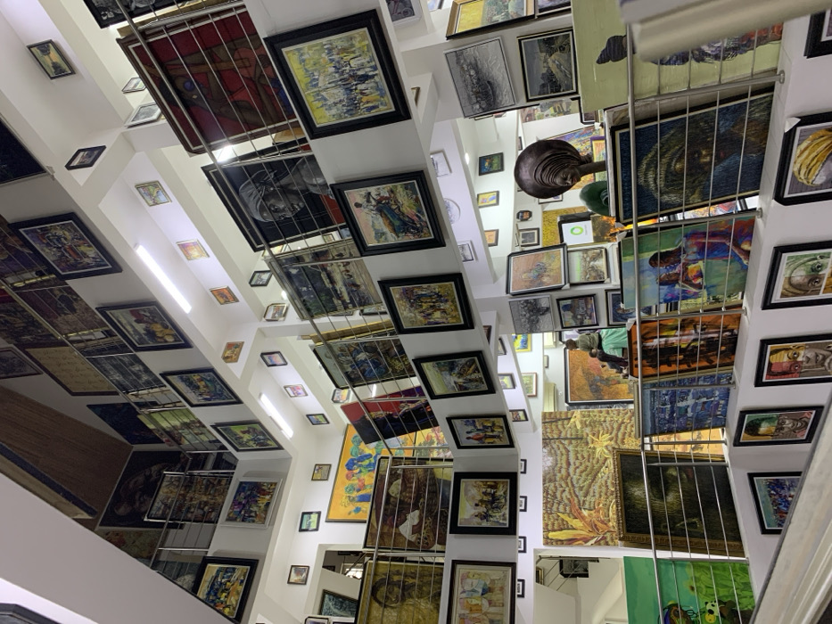 The image depicts a multi-story interior art gallery located in Ikate, Nigeria