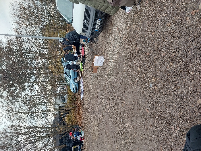 - "The scene depicts an outdoor market or 'vide-grenier' located in Eckbolsheim, France, taking place on an unpaved gravel and dirt lot, consistent with cool weather conditions under an overcast sky" by FM-Ywhvl1, licensed under CC BY 4.0