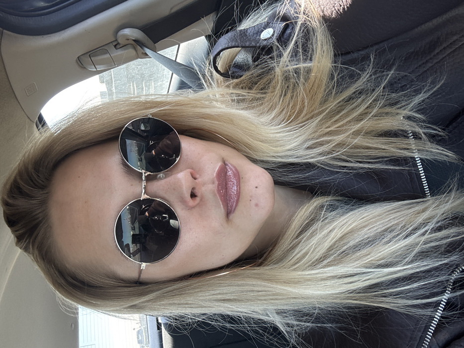 - "A blonde female is depicted in a close-up, chest-up selfie format, seated in the passenger side of a moving vehicle in Moscow, Russia" by FM-8yvcf1, licensed under CC BY 4.0