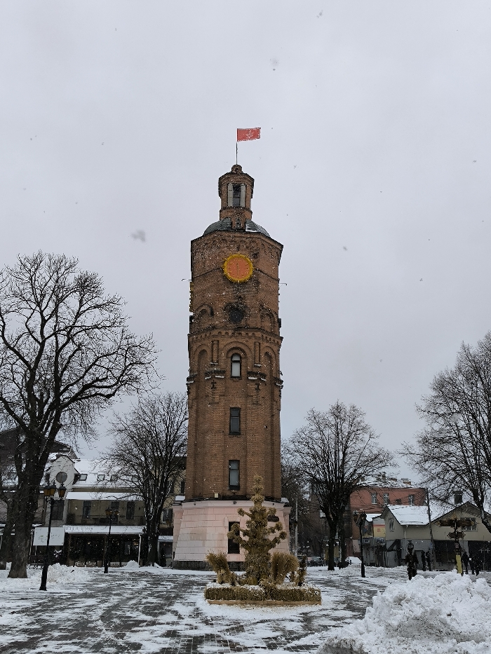 - "The image depicts the Vinnytsia Water Tower, located in the European Square of Vinnytsia, Ukraine, during a winter snowfall" by FM-dWhzM2, licensed under CC BY 4.0
