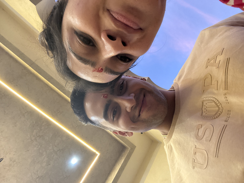 An image captured in Malasar, India, displays two individuals in a close-up indoor setting