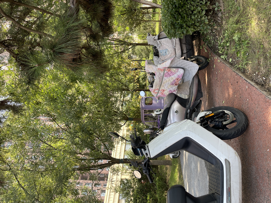 - "A daytime outdoor scene in Zhongyuan District, China, depicts a series of parked electric vehicles on a reddish-brown textured pathway adjacent to a verdant park-like area" by FM-oJoph1, licensed under CC BY 4.0