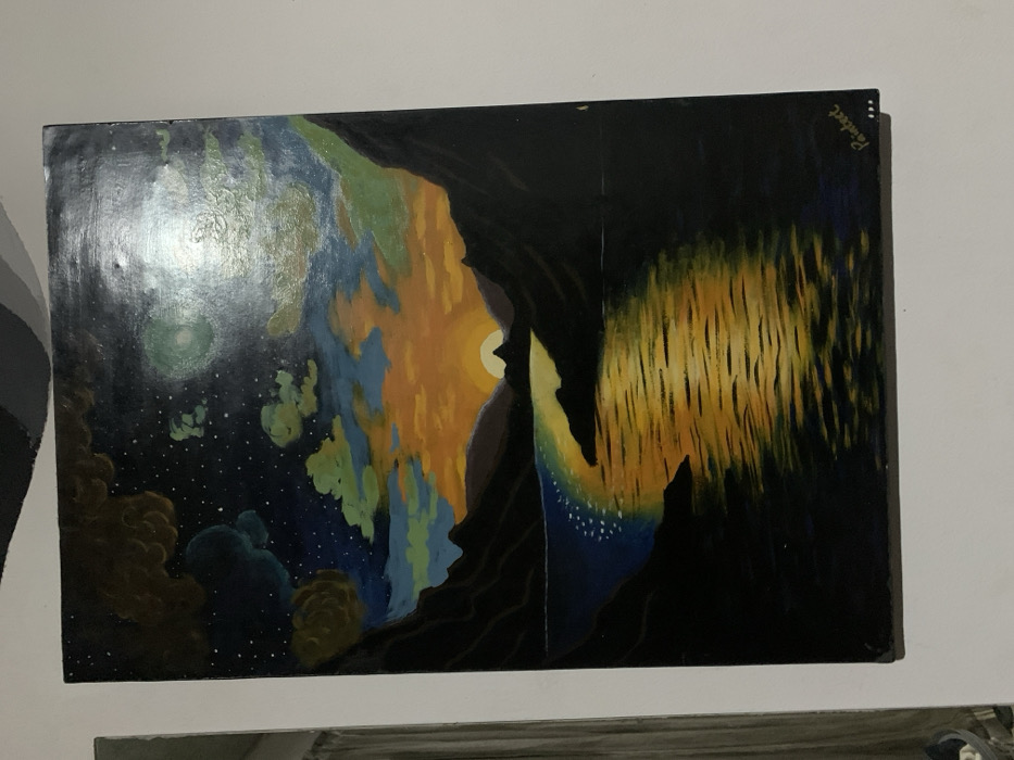 - "The painting depicts a cosmic landscape bisected by a jagged, black mass" by FM-4hiJG3, licensed under CC BY 4.0