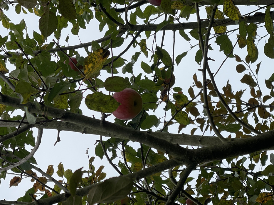 - "This image depicts a close-up, low-angle view of an apple tree located in La Wantzenau, France, against an overcast, light gray sky" by FM-ji4kE2, licensed under CC BY 4.0