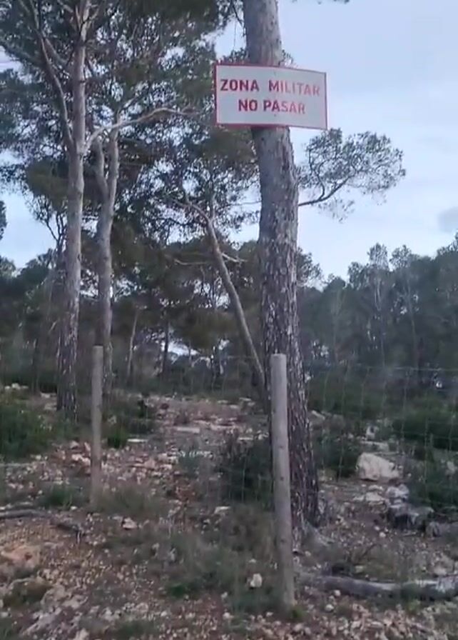 n area marked as a "military zone" with a sign in Spanish that reads "ZONA MILITAR NO PASAR" (Military Zone Do Not Enter)