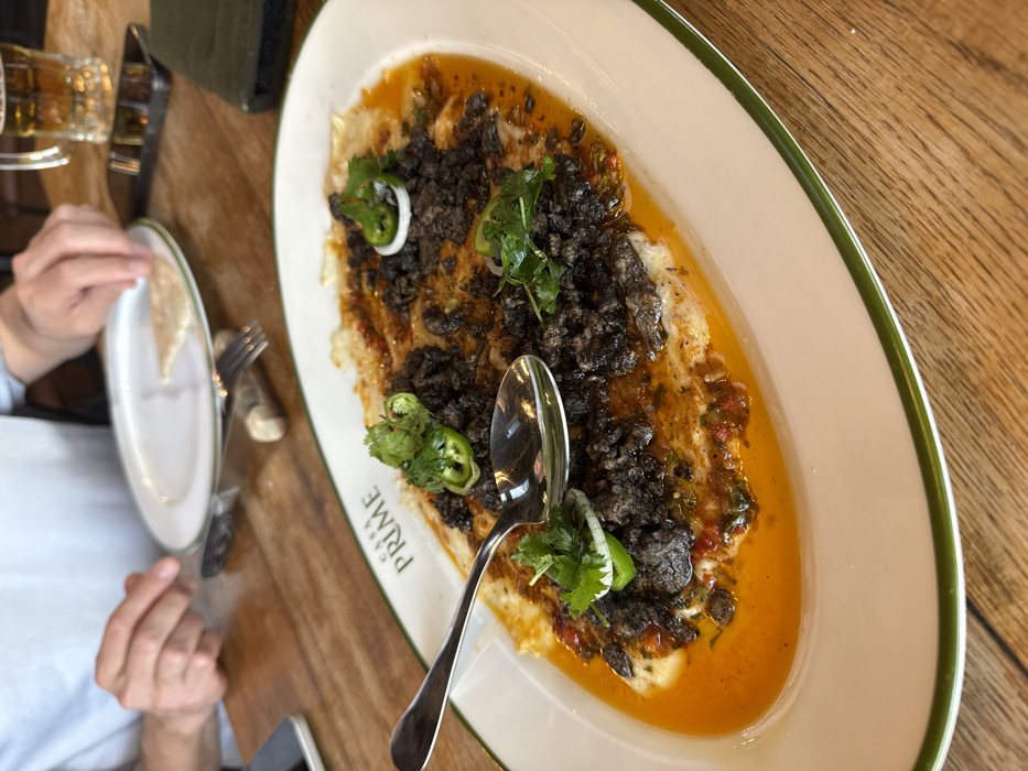 - "An oval plate holds a dish featuring a brown minced ingredient atop a creamy base, possibly cheese or a sauce" by FM-6aVsN2, licensed under CC BY 4.0