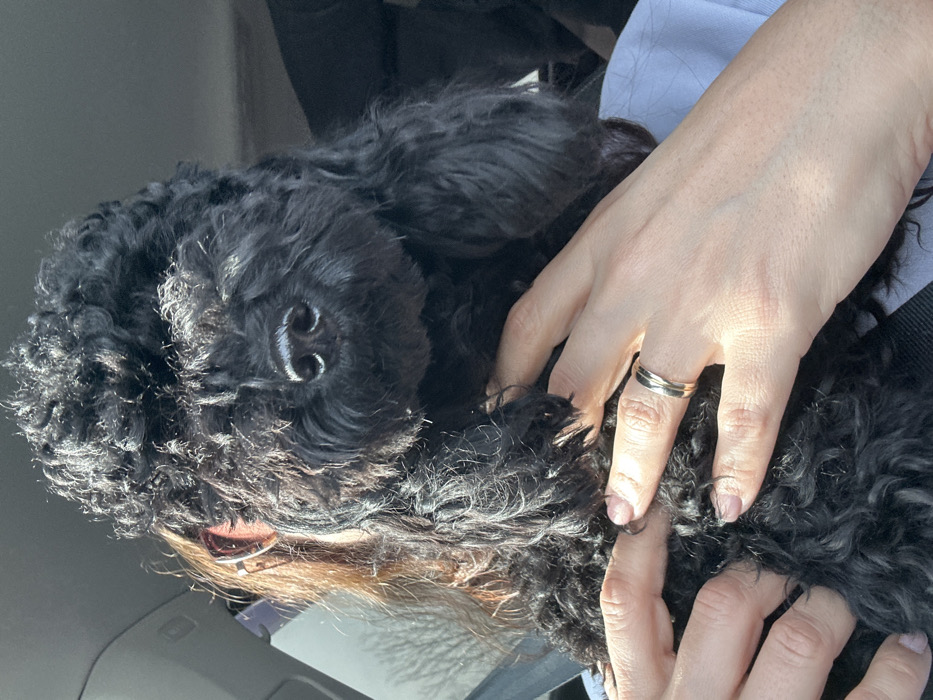 - "A close-up photograph captured in the city of Zlatinitsa, Bulgaria, depicts a black, curly-coated dog being held by an unseen individual inside a vehicle" by FM-lKpUb2, licensed under CC BY 4.0