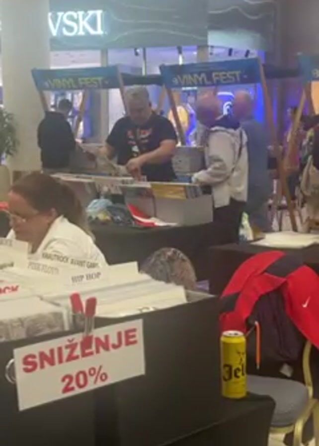 A video shows a "Vinyl Fest" event in what appears to be a shopping mall