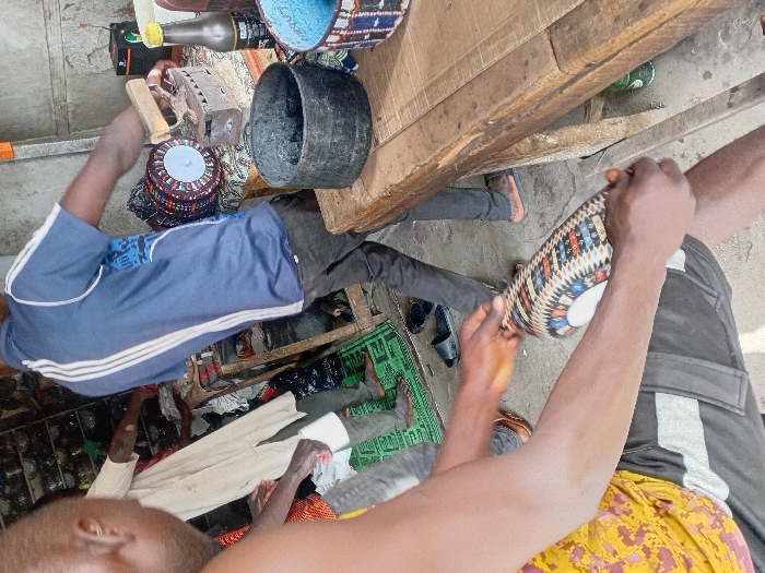 The image depicts an indoor workshop or small business establishment located in Sharada, Nigeria