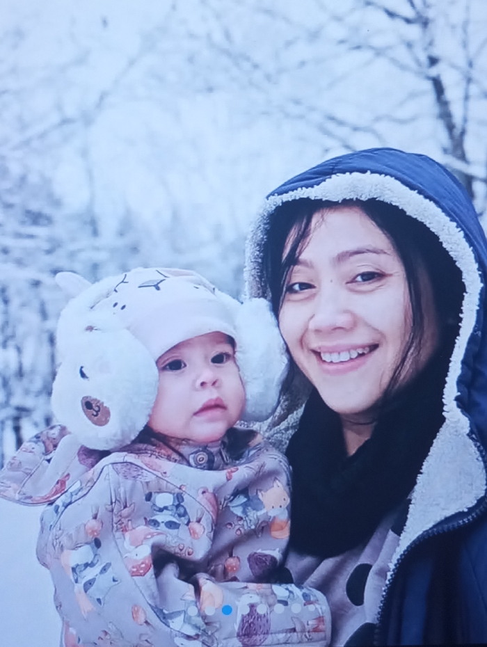 - "An adult female is depicted holding an infant outdoors in a snow-covered environment" by FM-1UPjC3, licensed under CC BY 4.0