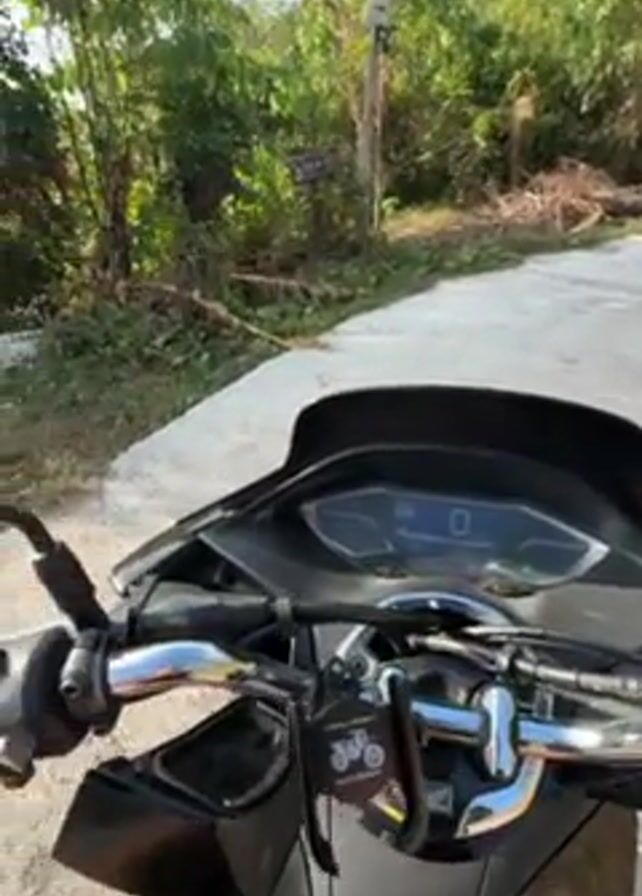 From the perspective of a scooter rider, the video begins with the scooter parked on a concrete surface