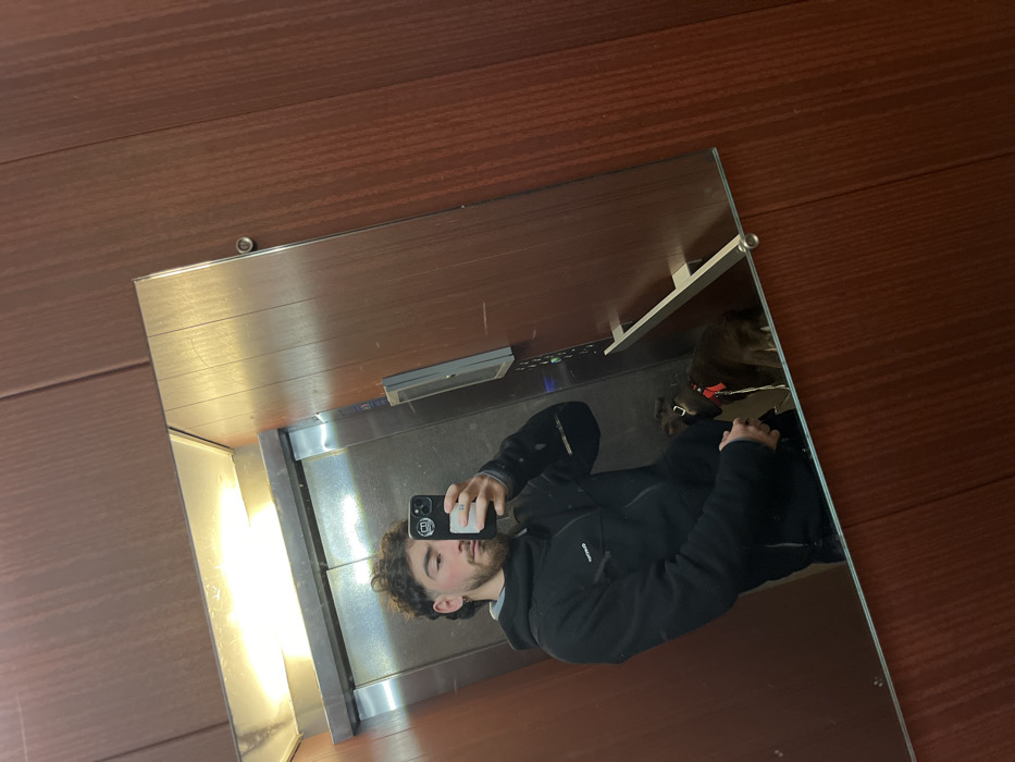 - "The image depicts a mirror selfie taken inside what appears to be an elevator or an elevator lobby within a building" by FM-f2iYg1, licensed under CC BY 4.0