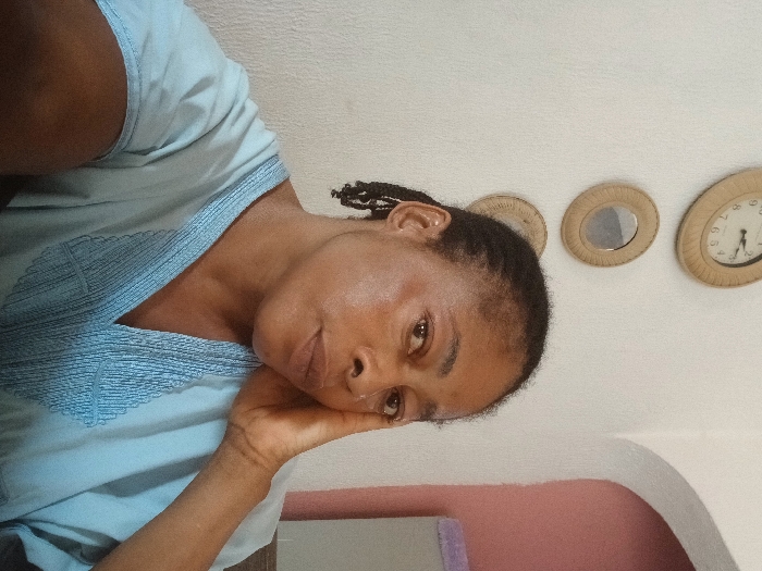 The image depicts an adult female in an indoor setting within Markurdi, Nigeria