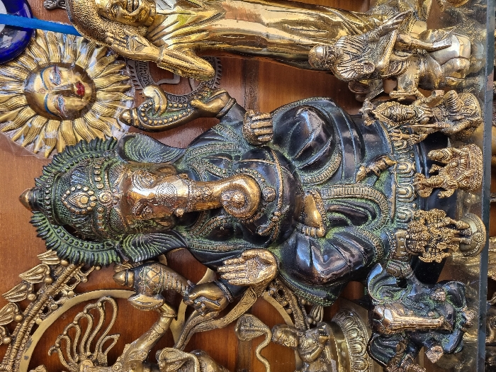 - "The image displays a detailed arrangement of brass and bronze religious idols and decorative items, consistent with merchandise found in a souvenir shop or market stall in Puttaparthi, India" by FM-Qmj6l1, licensed under CC BY 4.0