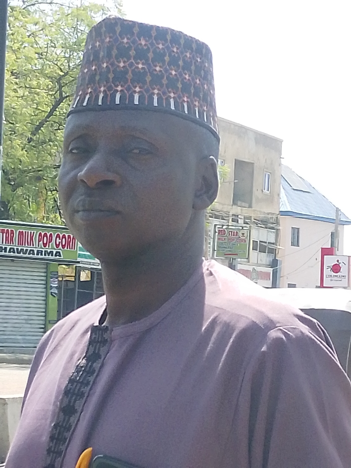A dark-skinned adult male is depicted in a chest-up portrait against an urban backdrop in Gyadi Gyadi Arewa, Nigeria