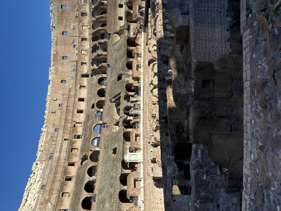 - "The image displays an interior perspective of the Colosseum, an ancient amphitheater situated in Rome, Italy, beneath a clear blue sky" by FM-n6yWE2, licensed under CC BY 4.0