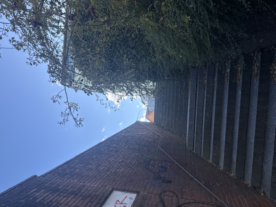 - "The image displays an upward-angled view of an outdoor pedestrian staircase in Dachau, Germany, framed by a brick wall on the left and dense vegetation on the right, under a clear blue sky with sparse clouds" by FM-0VTvB2, licensed under CC BY 4.0