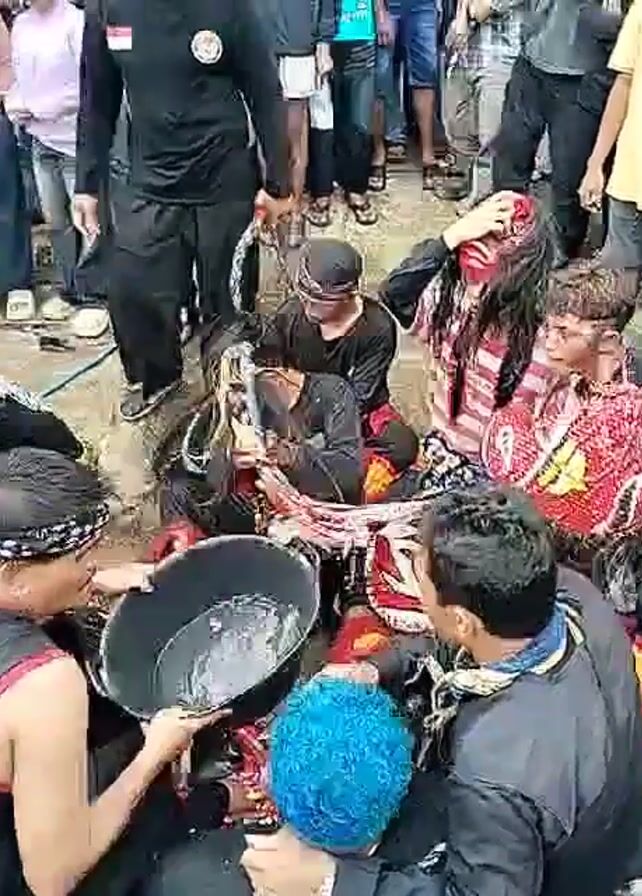 - "A group of people are kneeling and sitting on the ground, while others pour water on their heads from a black bucket" by FM-3Xduo1, licensed under CC BY 4.0