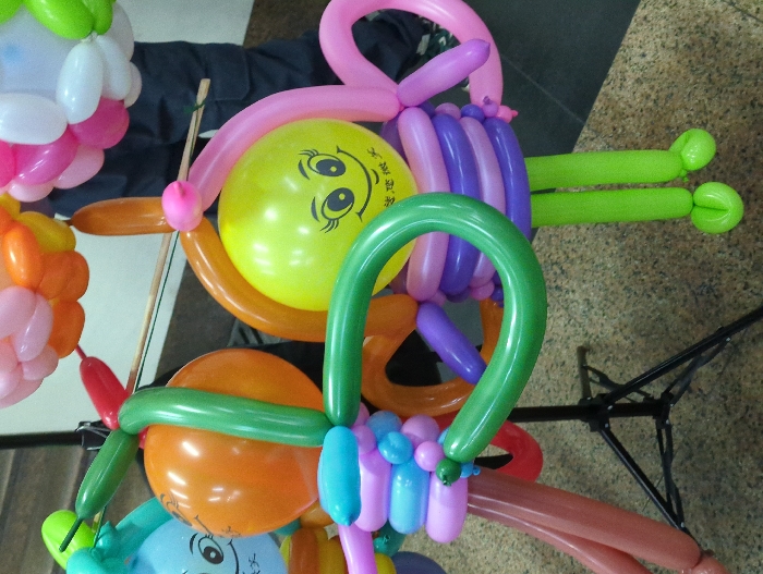 A whimsical balloon sculpture dominates the scene
