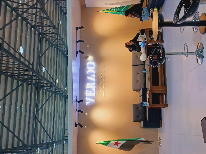 - "The image displays an indoor scene, identified as being in the city of Shab'a, Syria, within what appears to be a commercial exhibition booth or lounge area" by FM-hmmxi2, licensed under CC BY 4.0
