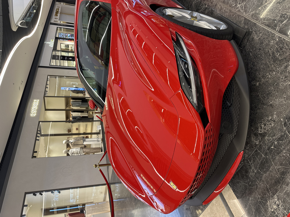 - "A highly polished, bright red Ferrari Roma is prominently displayed on a dark, reflective marble floor within Depo Mall in Tashkent, Uzbekistan" by FM-doFsC2, licensed under CC BY 4.0
