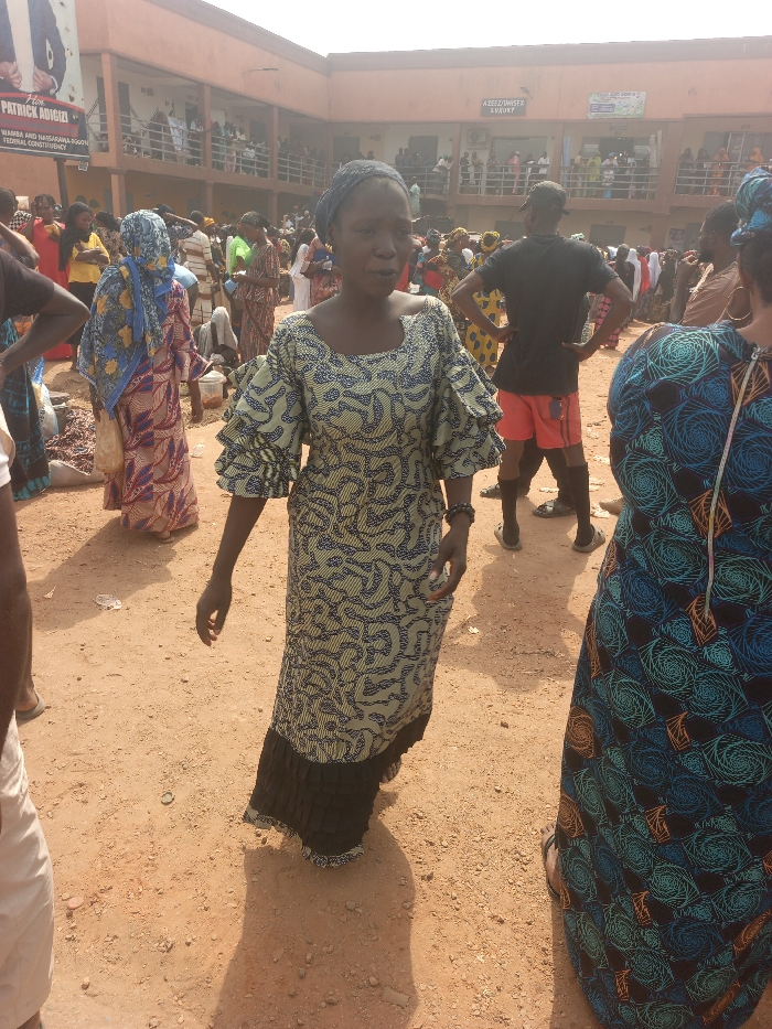 This image depicts a crowded outdoor public gathering in Ube, Nigeria, under bright daylight