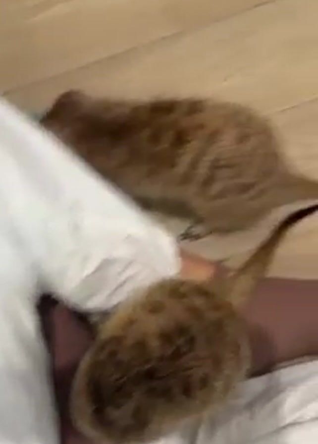 - "three meerkats moving around on a light-colored wooden floor, close to a person wearing white clothing" by FM-d9cGo1, licensed under CC BY 4.0