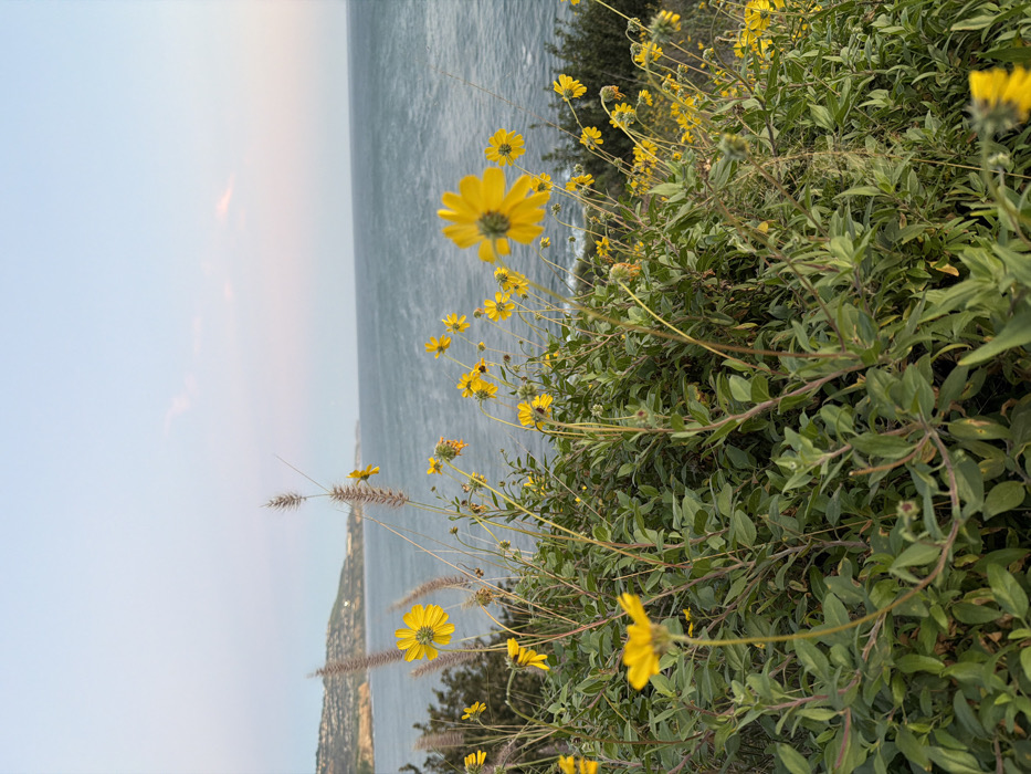 - "Yellow wildflowers bloom atop a green hillside overlooking a body of water, likely the ocean" by FM-oB3Mx2, licensed under CC BY 4.0