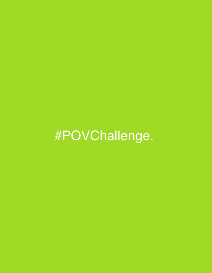 The image displays a uniform, solid lime green background. Centered horizontally and vertically within this field is the white text "#POVChallenge." rendered in a sans-serif typeface. No individuals, discernible objects, actions, interactions, or additional environmental features are depicted. The specified location of Gangloff, Germany, is not visually verifiable within the image content.