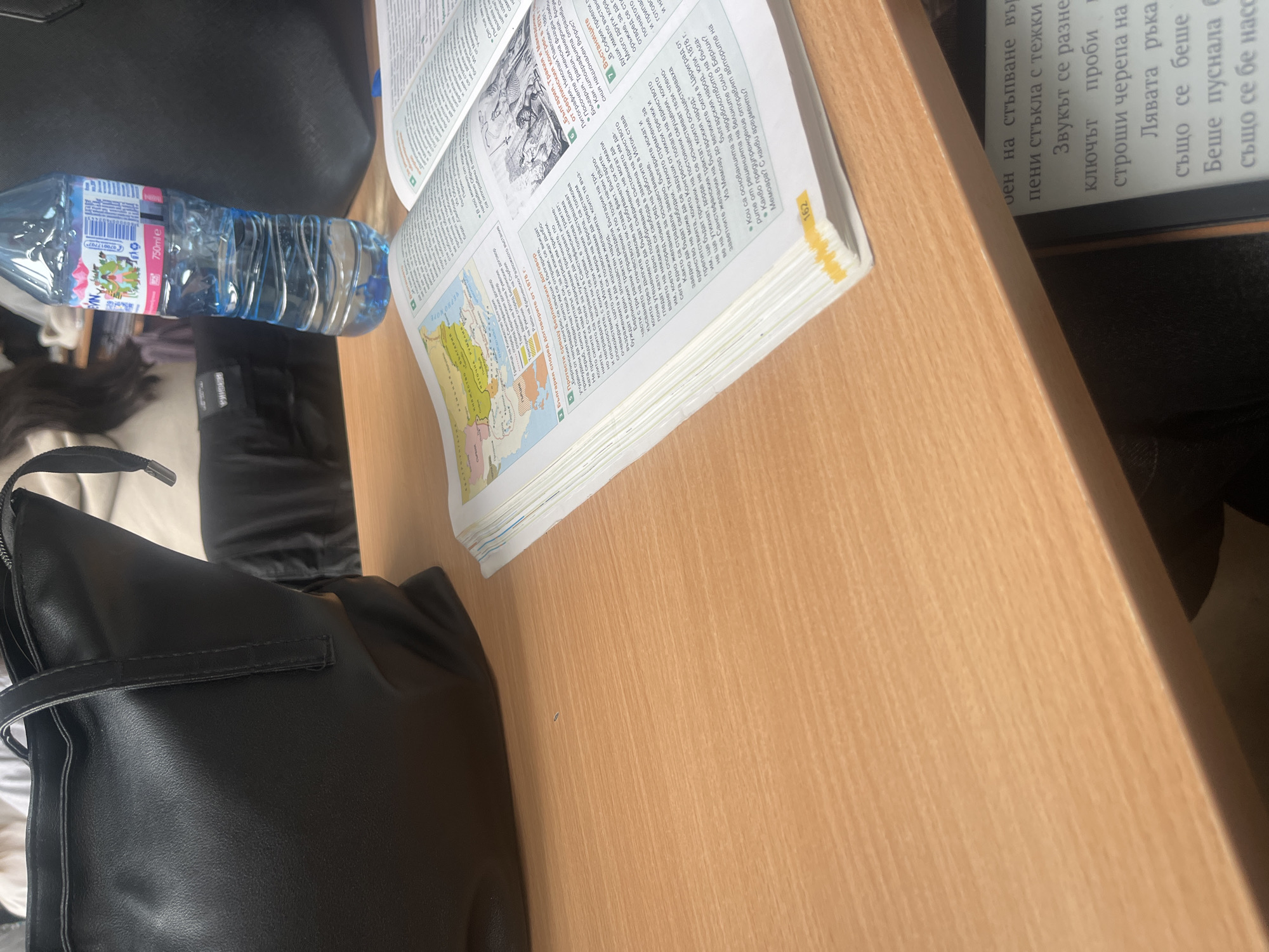- "The image displays an indoor scene on a light brown, wood-grain laminated desk surface, presumably in Asenovgrad, Bulgaria" by FM-h7vTq2, licensed under CC BY 4.0