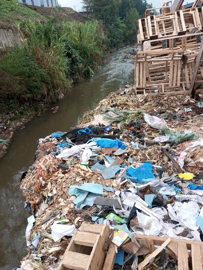 - "This image depicts a heavily polluted urban waterway, likely a river or canal, within Nairobi, Kenya" by FM-XIT4O2, licensed under CC BY 4.0