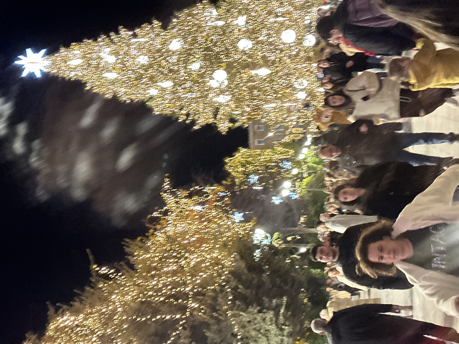 - "A crowd gathers around a large Christmas tree, brightly lit with countless golden lights and topped with a shining star" by FM-n6yWE2, licensed under CC BY 4.0