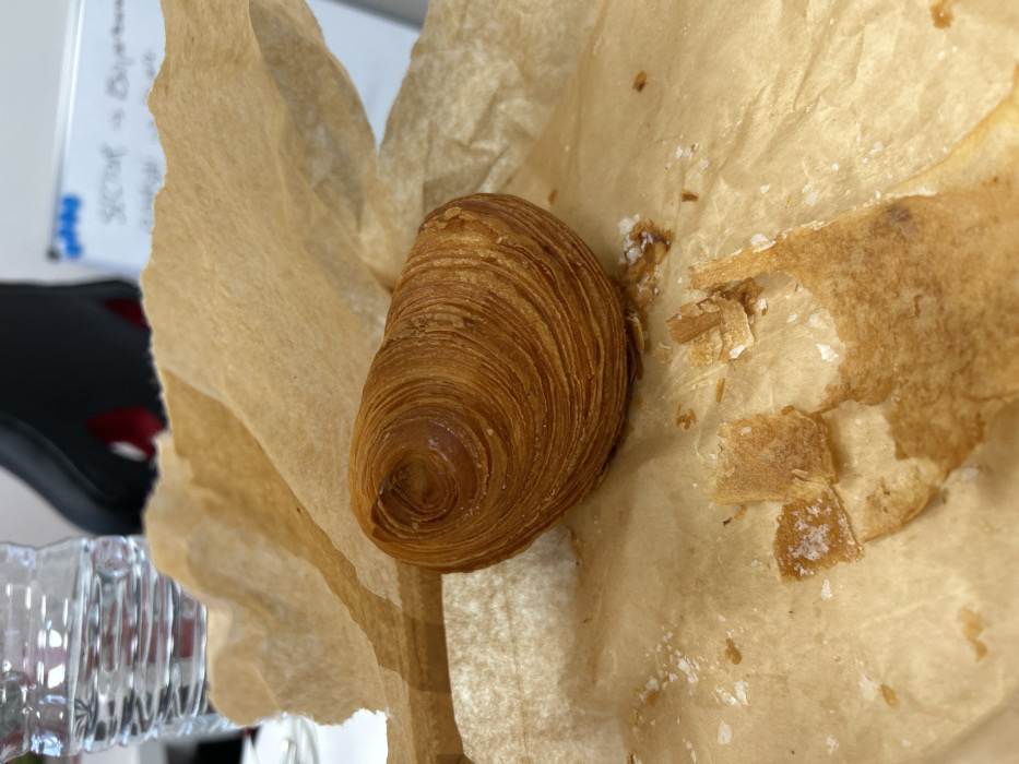 - "A croissant rests in a crinkled brown paper bag" by FM-khYMm1, licensed under CC BY 4.0