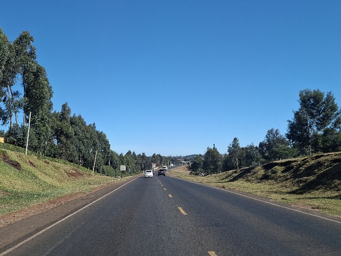 view of a two-lane paved road in Limuru Town, Kenya