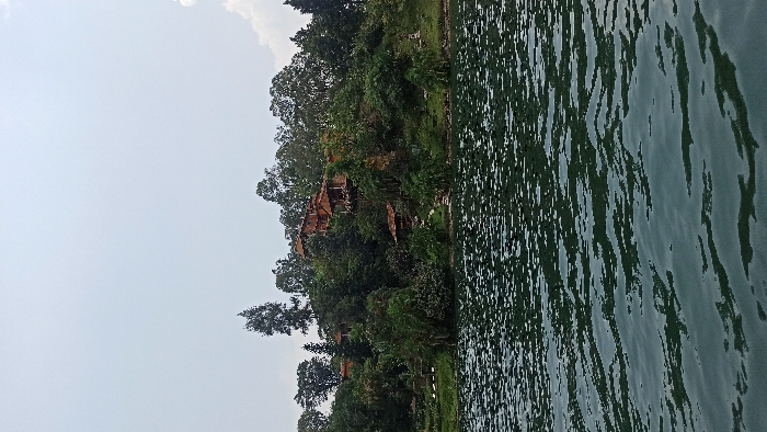 - "The image displays a panoramic view of a lush, forested hillside rising from the edge of a large body of water under an overcast sky in Bwishyura, Rwanda" by FM-oIWu62, licensed under CC BY 4.0