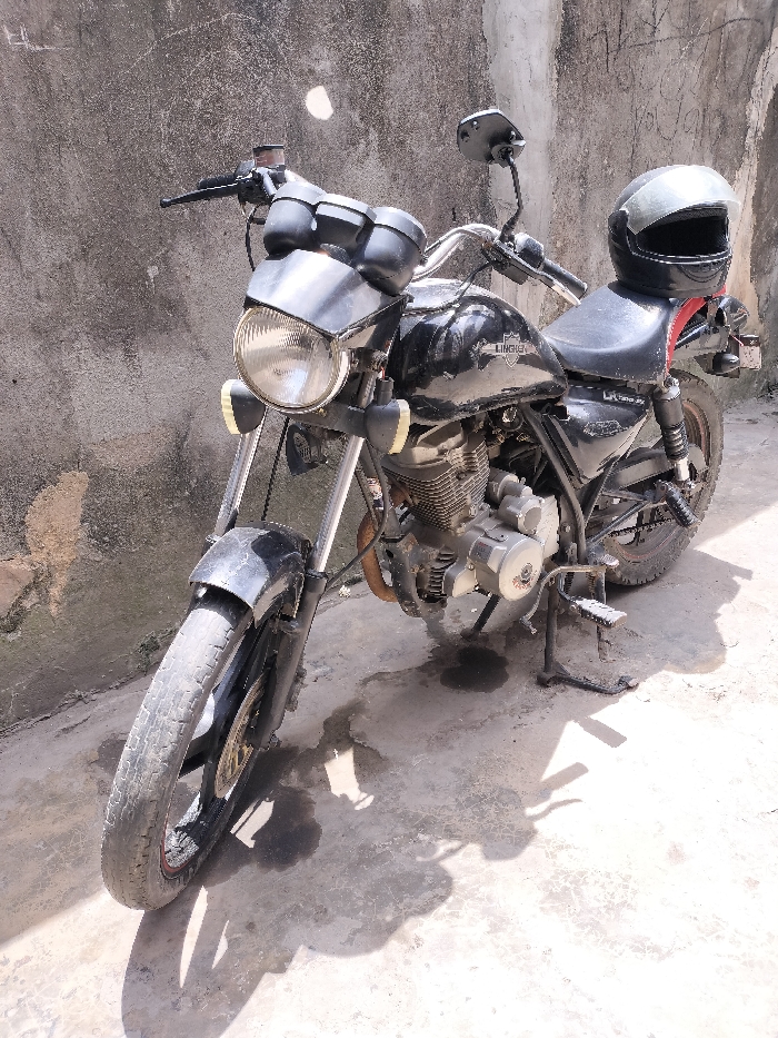 - "The scene in Alaiyabiagba, Nigeria, features a black "Linguein LA FENFA 200" motorcycle parked on concrete pavement against a weathered, grey concrete wall" by FM-pLBwv1, licensed under CC BY 4.0
