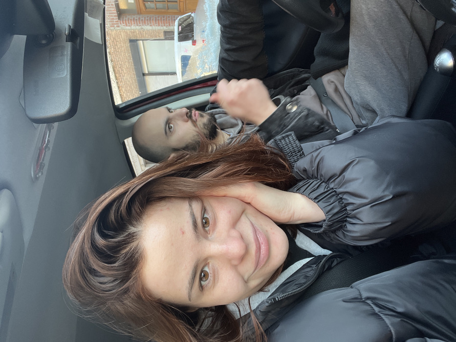 The image displays the interior of a vehicle in Wattrelos, France, occupied by two individuals
