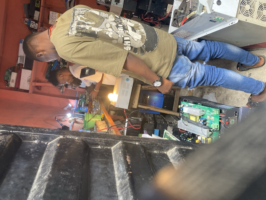 - "Within an electronics repair workshop in Ojo, Nigeria, three adult males are present" by FM-Na2vj2, licensed under CC BY 4.0