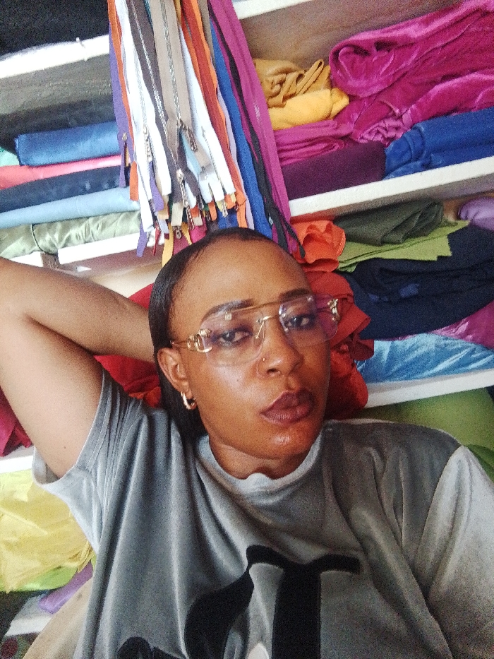 An adult female is depicted indoors within a retail environment in Sabon Tasha, Nigeria