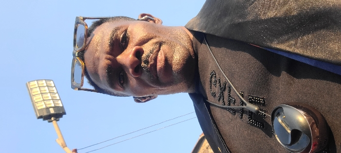 The image displays an adult male from a low-angle perspective, located in the City of Alayi, Nigeria