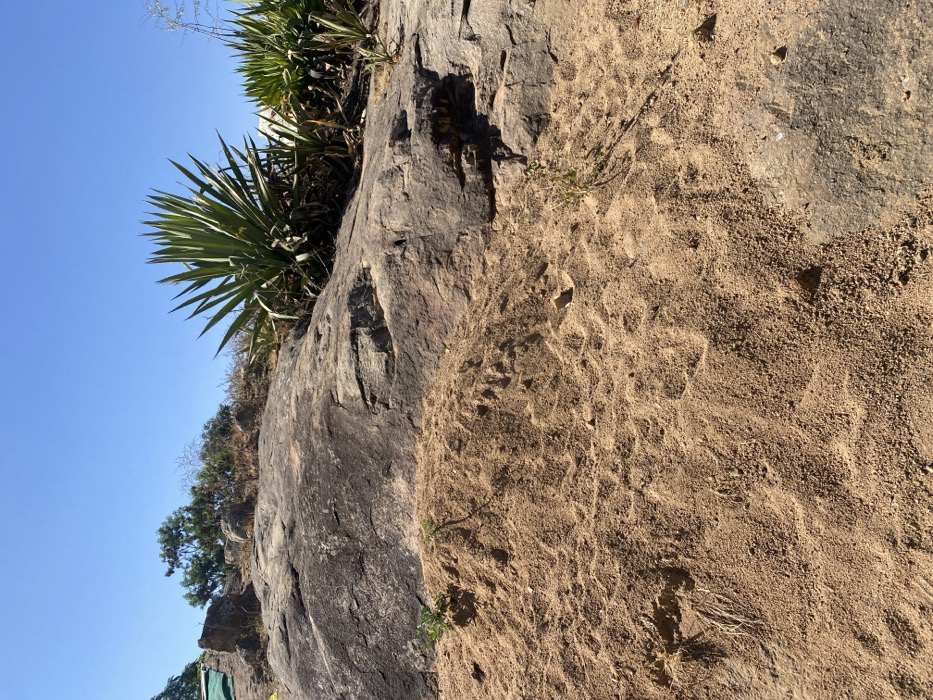- "A rock face covered in dirt and a few plants under a clear blue sky" by FM-8pMv02, licensed under CC BY 4.0