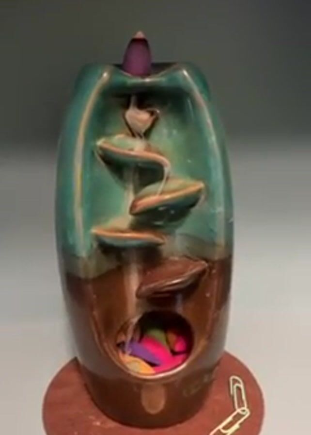 ceramic incense burner with a green top and brown bottom